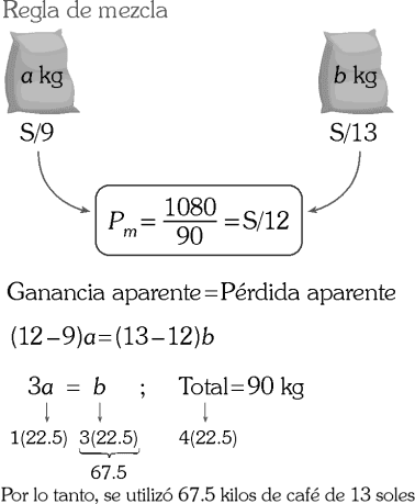 Julia compró 90 kilos de café a 1080 soles. Ella sabe que dicho café es la mezcla de dos tipos diferentes, cuyos precios “por kilo” son 9 y 13 soles, respectivamente.